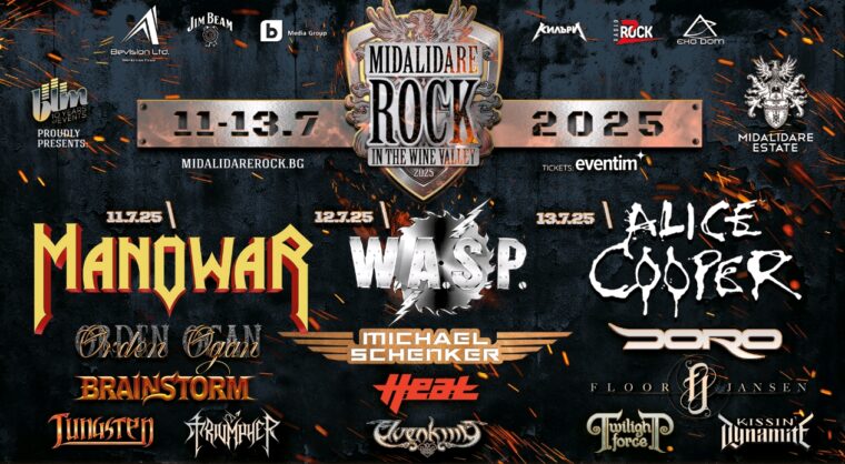 Броени дни остават до петото издание на Midalidare Rock In The Wine Valley. Фестивалът в долината на виното ще посрещне 14 световни банди – MANOWAR, W.A.S.P., Alice Cooper, DORO, Michael Schenker, Orden Ogan, H.E.A.T., Floor Jansen, Brainstorm, Twilight Force, Elvenking, Kissin’ Dynamite, Tungsten и Triumpher