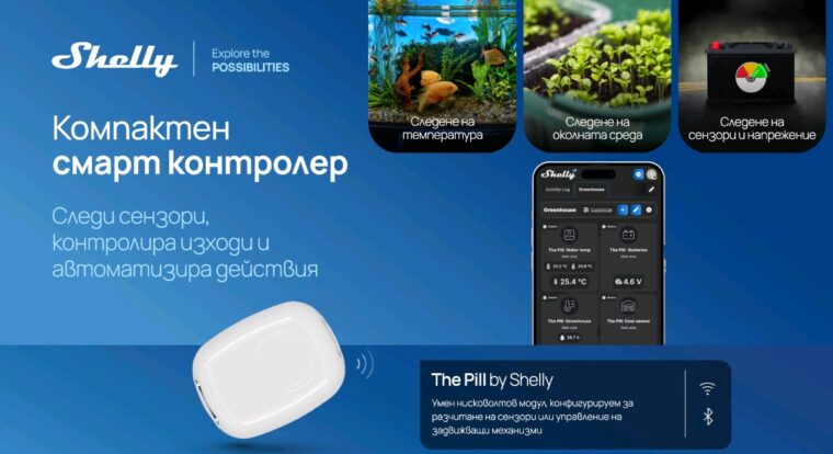 Shelly Group, глобален лидер в решенията за умен дом, сградна автоматизация и енергиен мениджмънт, обяви пускането на четири нови продукта за интелигентно управление на дома и бизнеса, както и нов димер от поколението Gen4, създаден за американския пазар. Новите попълнения – три устройства от серията Shelly BLU, компактният The Pill by Shelly и Shelly Dimmer Gen4 US – са проектирани да осигурят на потребителите повече гъвкавост, контрол и лекота при автоматизацията и мониторинга на дома или бизнеса, като поддържат двойна Bluetooth и Zigbee свързаност.