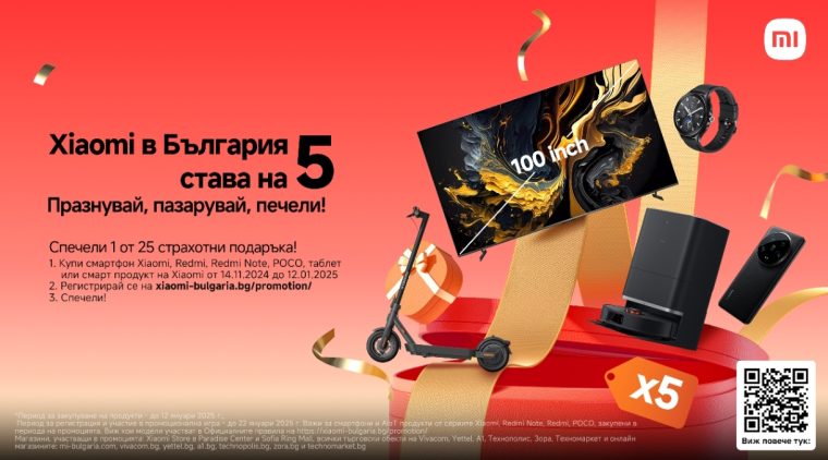 Кампанията “Xiaomi в България става на 5 – празнувай, пазарувай, печели” стартира на 14 ноември