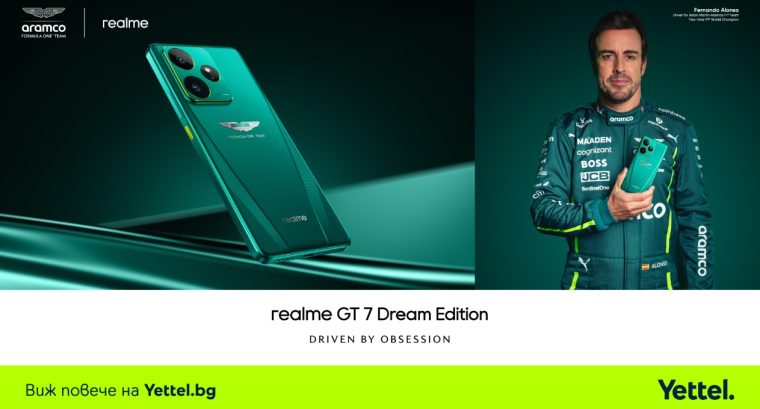 Yettel официално стартира продажбите на специалната версия Realme GT 7 Dream Edition 5G, като смартфоните могат да бъдат закупени само онлайн на Yettel.bg. Моделът е създаден в партньорство с отбора на Aston Martin Formula One® и e вдъхновен от емблематичните високоскоростни трасета на Формула 1.